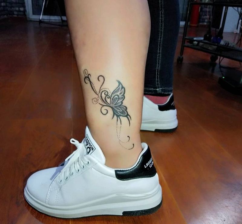 脚踝清新蝴蝶纹身图片_脚部腿部清新蝴蝶纹身图案
