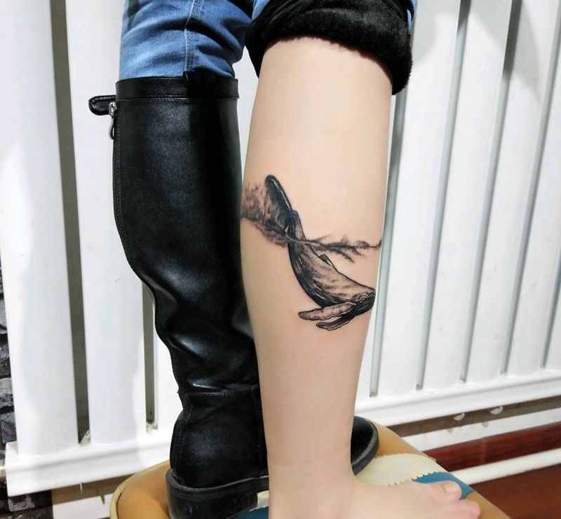 • T网红王老大花腿龙纹身图片_腿部新传统纹身图案