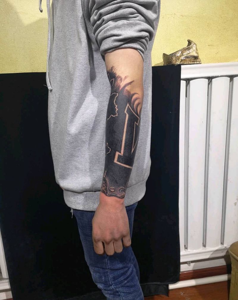 当前位置: 首页 >山东省潍坊市纹身店-忠義堂刺青纹身图案>黑臂设计遮盖后纹身图片_手臂纹身图案