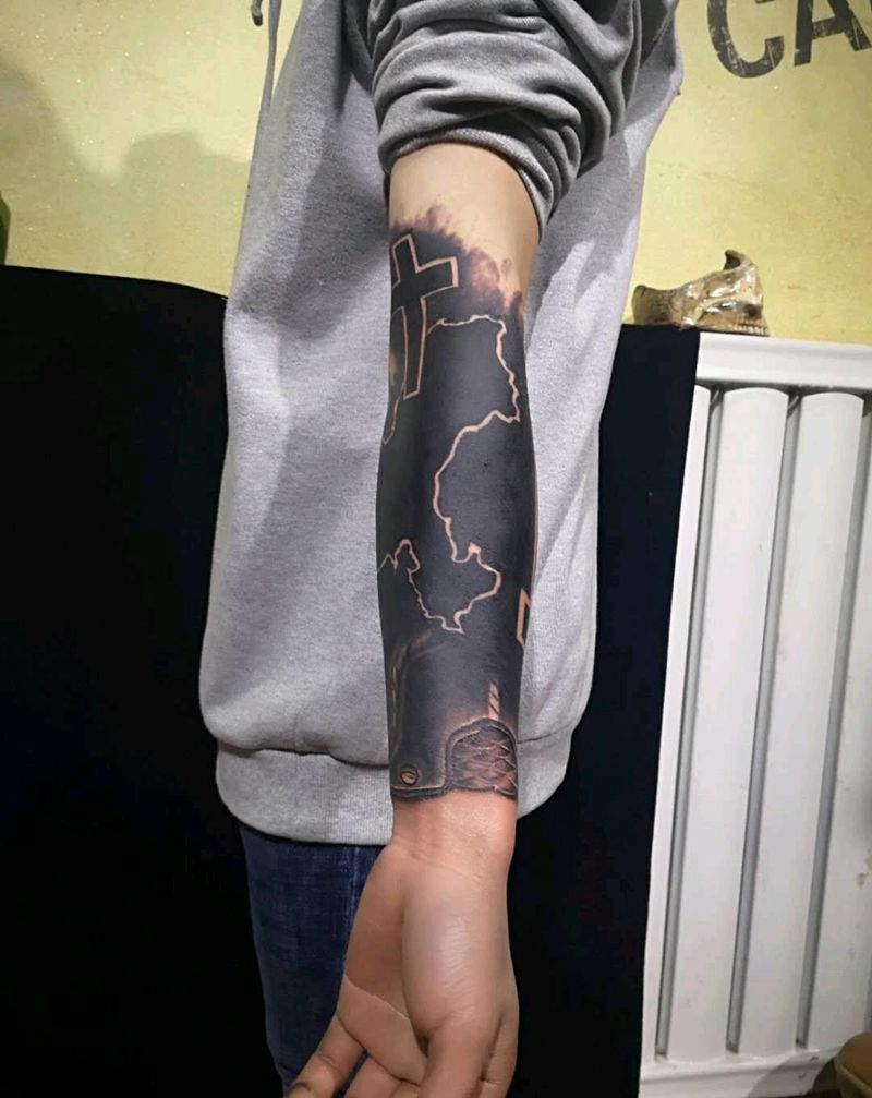 黑臂设计遮盖后纹身图片_手臂纹身图案