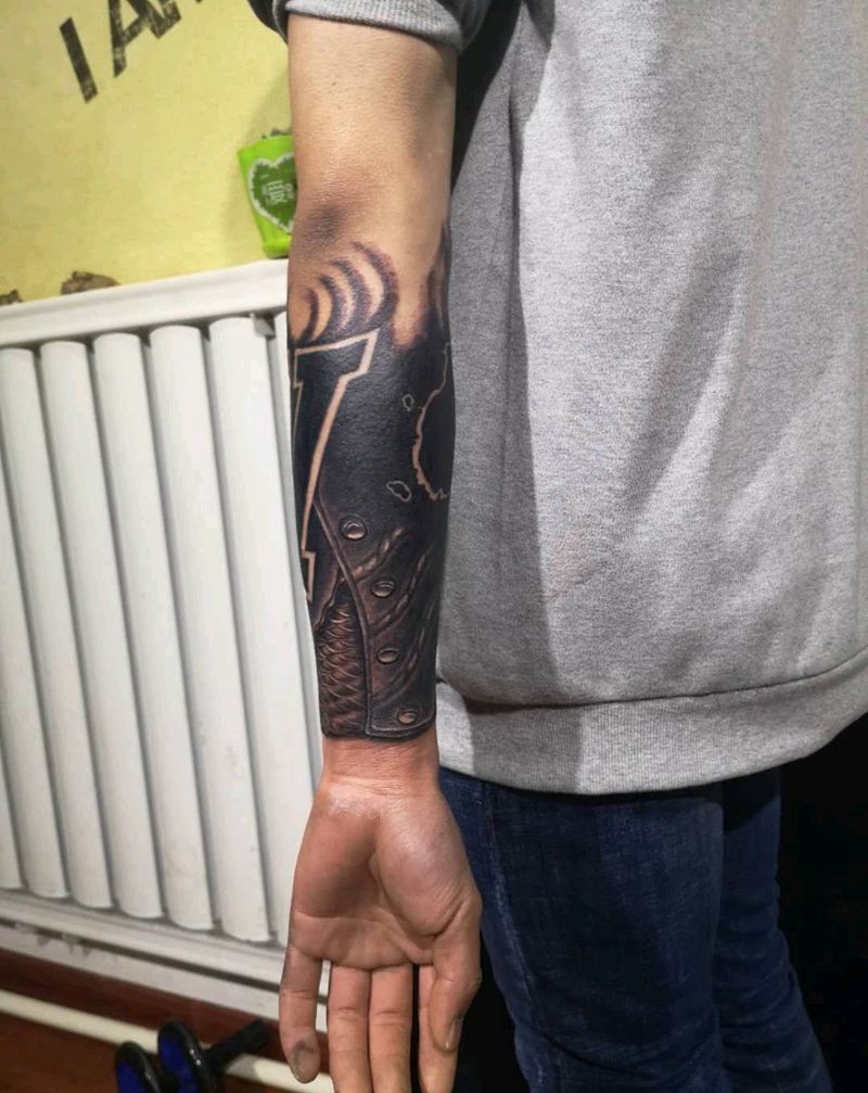 黑臂设计遮盖后纹身图片_手臂纹身图案