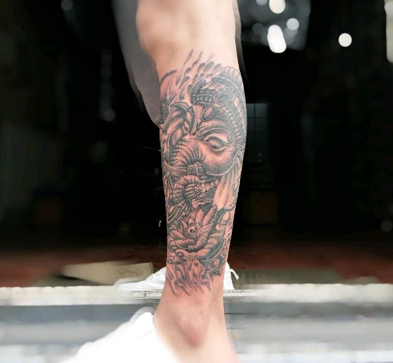 当前位置: 首页 >山东省潍坊市纹身店-忠義堂刺青纹身图案>小腿象神纹身图片_腿部纹身图案