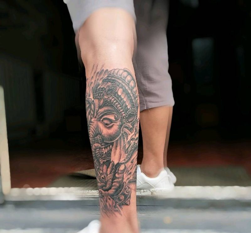 当前位置: 首页 >山东省潍坊市纹身店-忠義堂刺青纹身图案>小腿象神纹身图片_腿部纹身图案