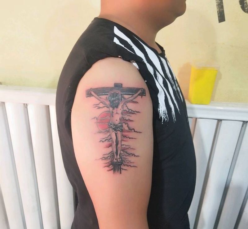 当前位置: 首页 >山东省潍坊市纹身店-忠義堂刺青纹身图案>耶稣十字架纹身图片_手臂纹身图案