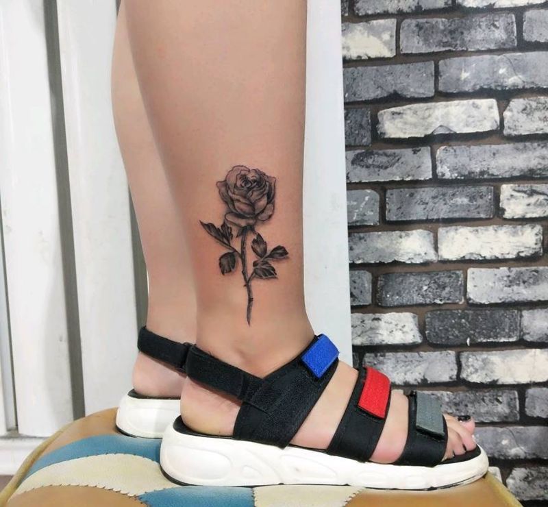 素花一枚纹身图片_腿部纹身图案