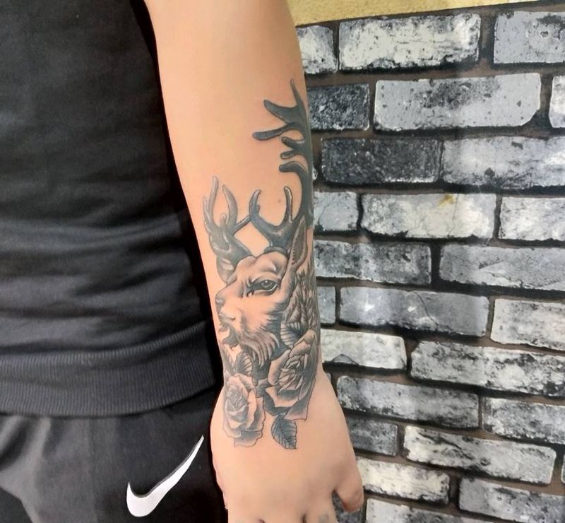 当前位置: 首页 >山东省潍坊市纹身店-忠義堂刺青纹身图案>鹿神纹身图片_手臂纹身图案