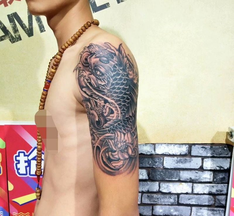 当前位置: 首页 >山东省潍坊市纹身店-忠義堂刺青纹身图案>招财锦鲤纹身图片_手臂纹身图案