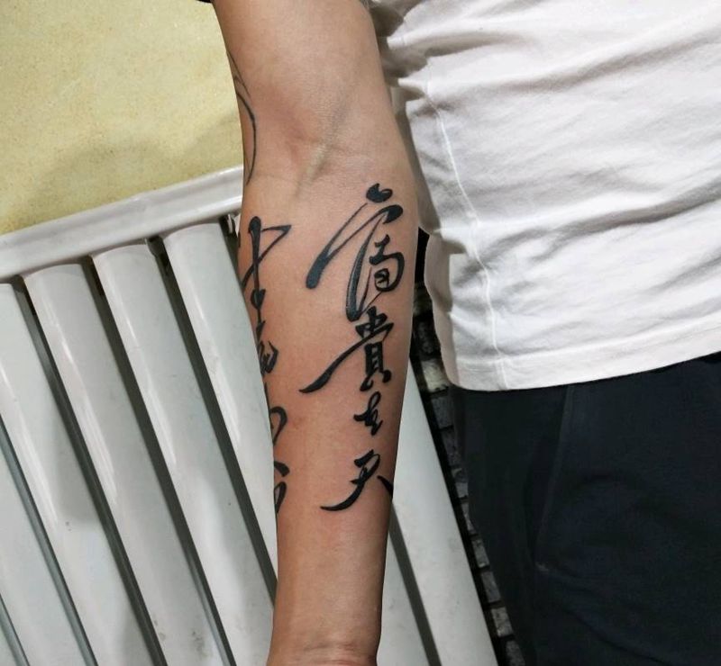 当前位置: 首页 >山东省潍坊市纹身店-忠義堂刺青纹身图案>水墨字体纹身图片_手臂纹身图案