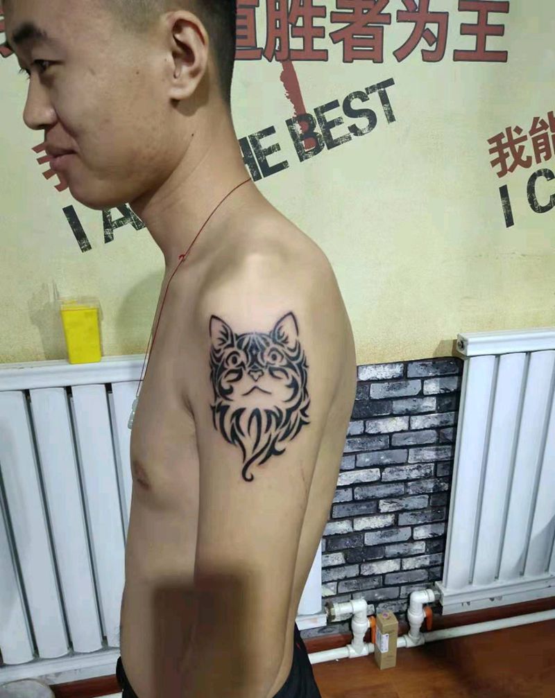 当前位置: 首页 >山东省潍坊市纹身店-忠義堂刺青纹身图案>图腾猫纹身图片_手臂纹身图案