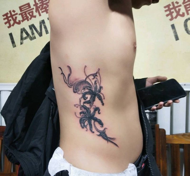 当前位置: 首页 >山东省潍坊市纹身店-忠義堂刺青纹身图案>黑灰彼岸花纹身图片_腹部纹身图案