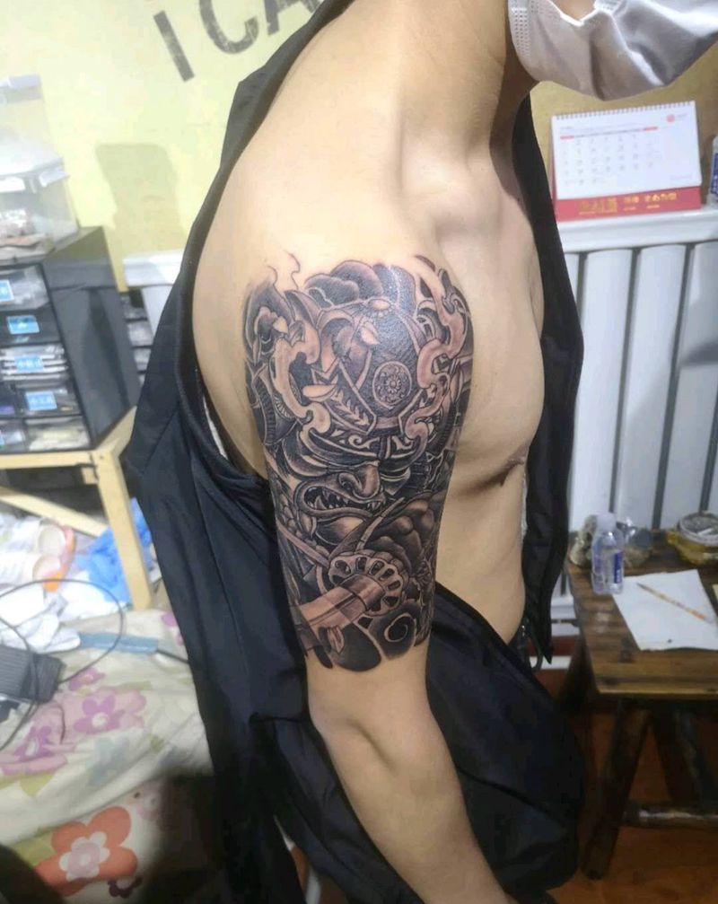 当前位置: 首页 >山东省潍坊市纹身店-忠義堂刺青纹身图案>鬼武士纹身图片_手臂纹身图案