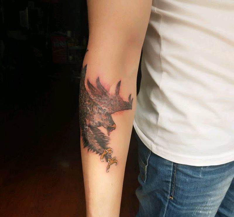 当前位置: 首页 >山东省潍坊市纹身店-忠義堂刺青纹身图案>遮盖后雄鹰纹身图片_手臂纹身图案