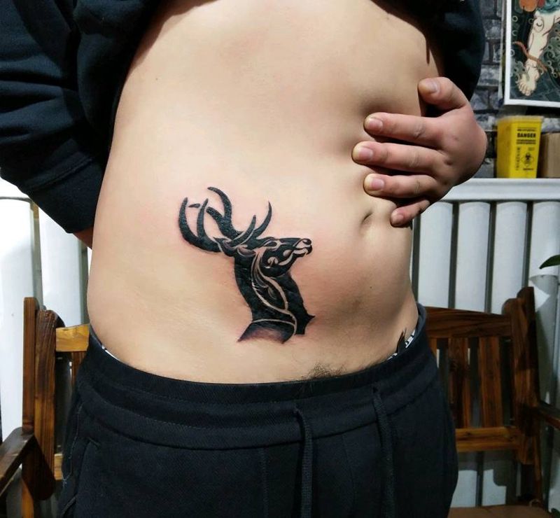 当前位置: 首页 >山东省潍坊市纹身店-忠義堂刺青纹身图案>图腾鹿财纹身图片_腹部纹身图案