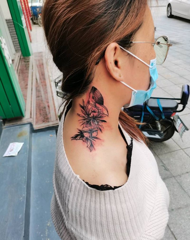 清新素花鲲纹身图片_颈部纹身图案
