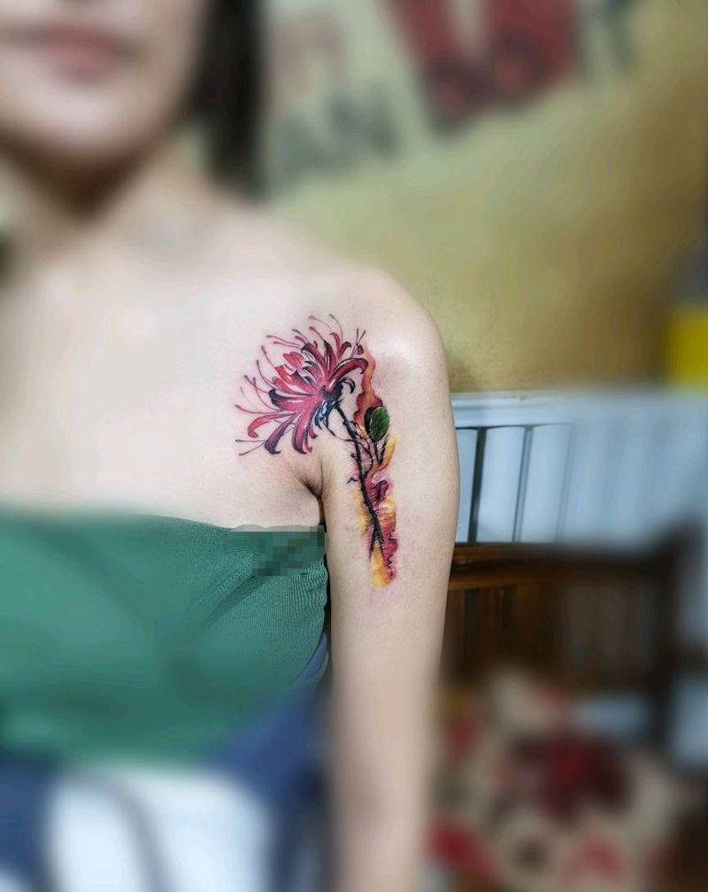 彼岸花遮盖疤痕纹身图片_肩部纹身图案