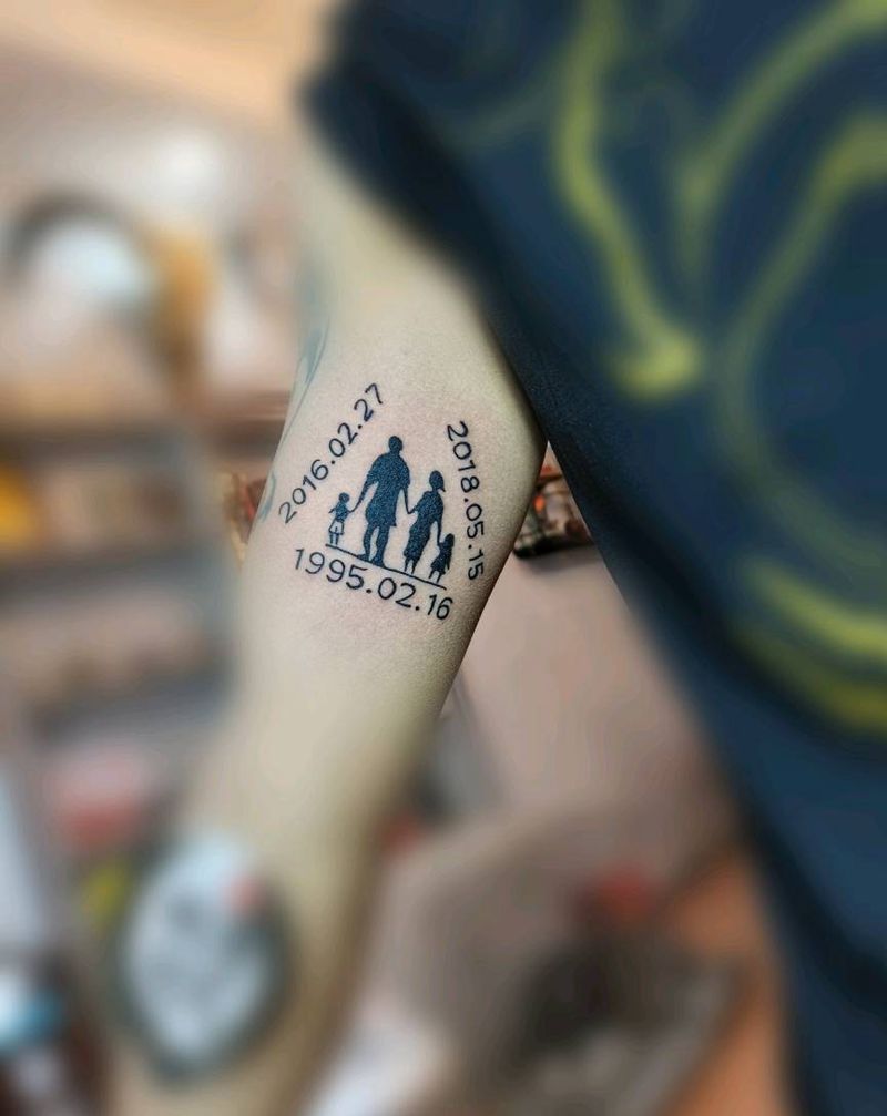 • T家庭图,一家四口生日纪念!纹身图片_手臂纹身图案