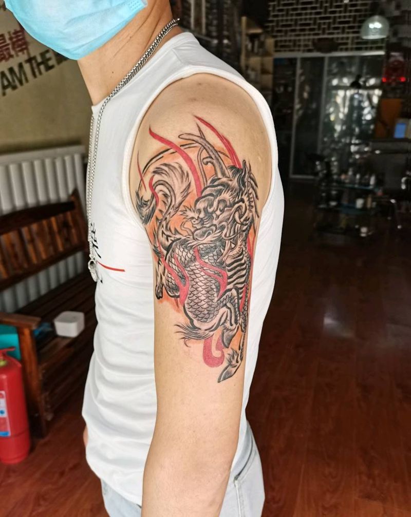 当前位置: 首页 >山东省潍坊市纹身店-忠義堂刺青纹身图案>麒麟纹身图片_手臂纹身图案