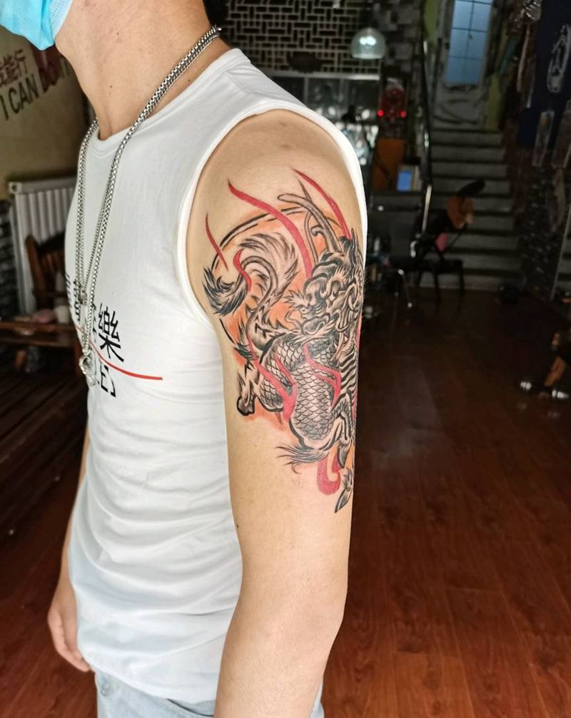 当前位置: 首页 >山东省潍坊市纹身店-忠義堂刺青纹身图案>麒麟纹身图片_手臂纹身图案