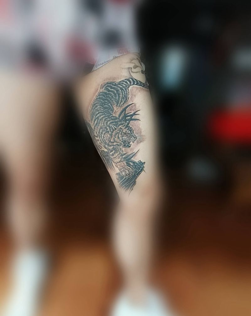 当前位置: 首页 >山东省潍坊市纹身店-忠義堂刺青纹身图案>大腿内侧下山虎纹身图片_腿部纹身图案