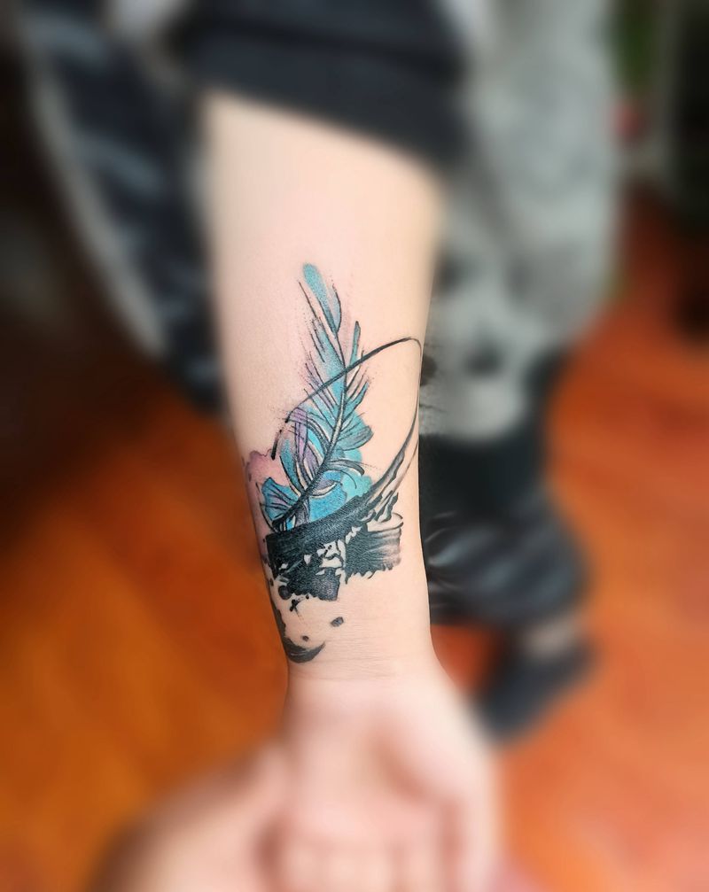当前位置: 首页 >山东省潍坊市纹身店-忠義堂刺青纹身图案>彩色羽毛纹身图片_手臂纹身图案