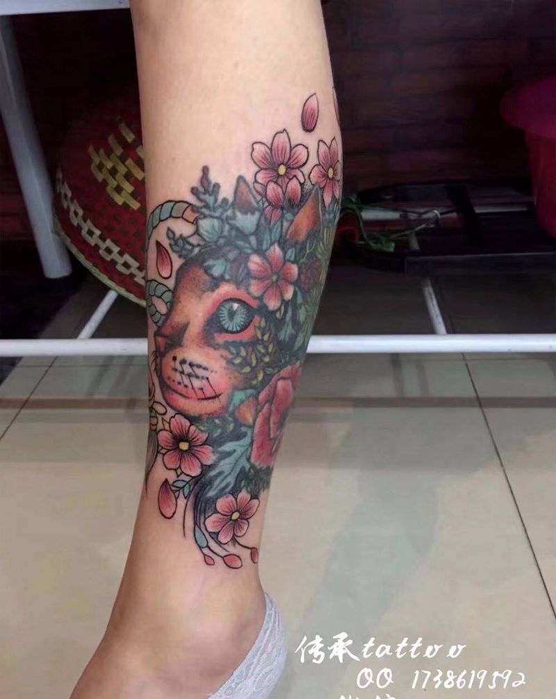 • T网红王老大花腿龙纹身图片_腿部新传统纹身图案