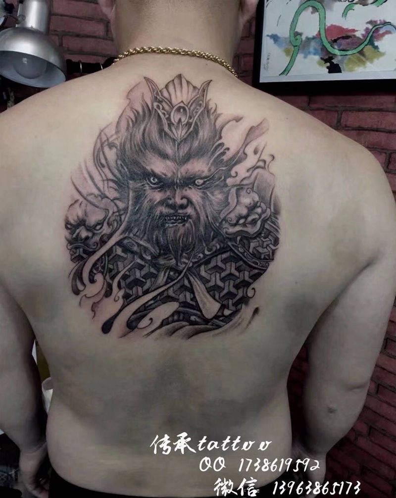 黑灰满背纹身图案