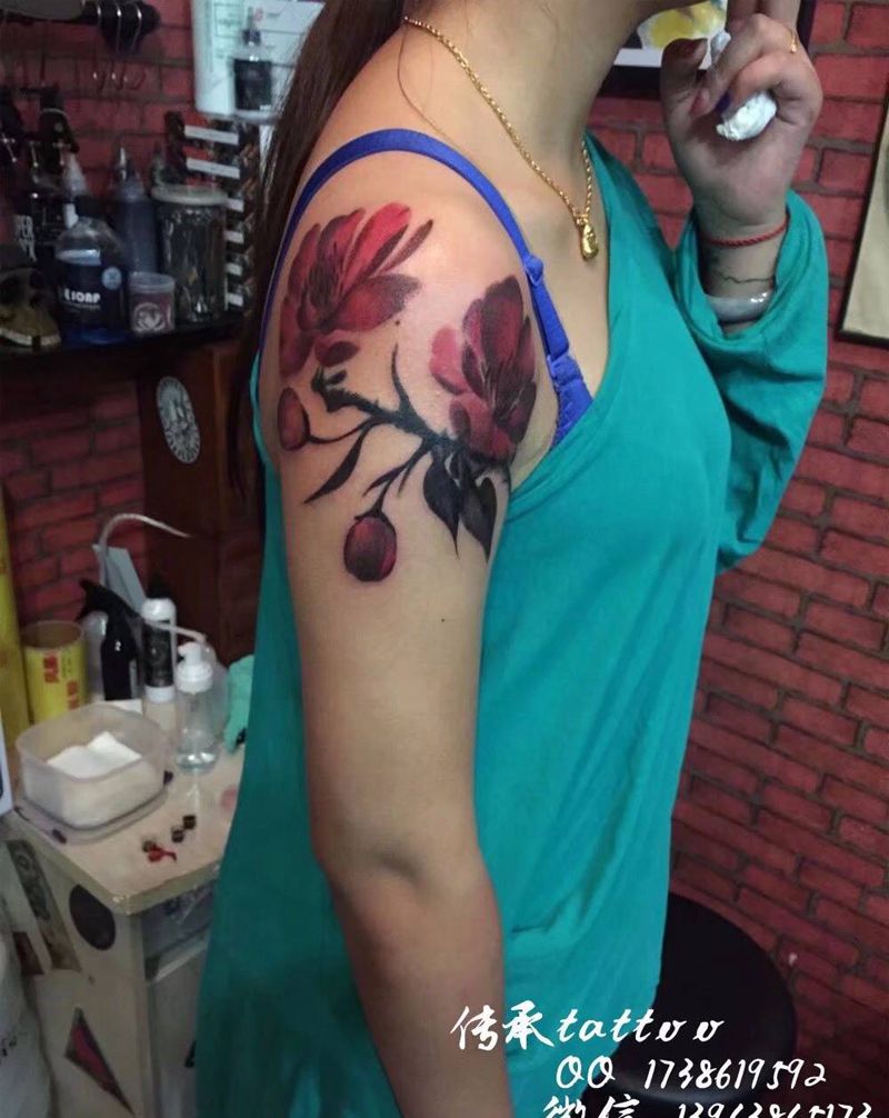 • 女性大花胸纹身_43张霸气漂亮的女性大花胸纹身图案作品