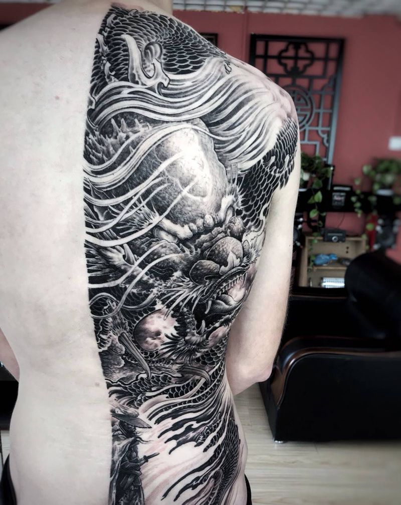 • T云龙九郎纹身图片_背部老传统云龙九郎纹身图案