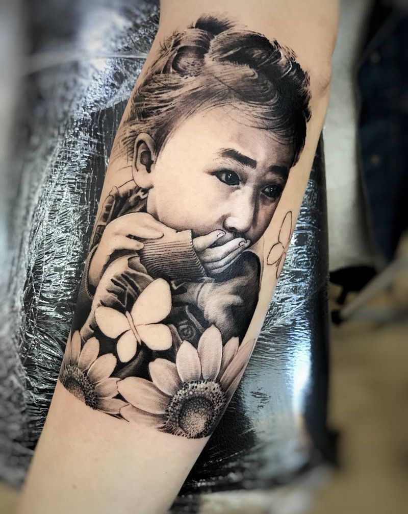 当前位置: 首页 >山东省烟台市纹身店-李俊 刺青纹身图案>肖像纹身图片_手臂欧美写实纹身图案