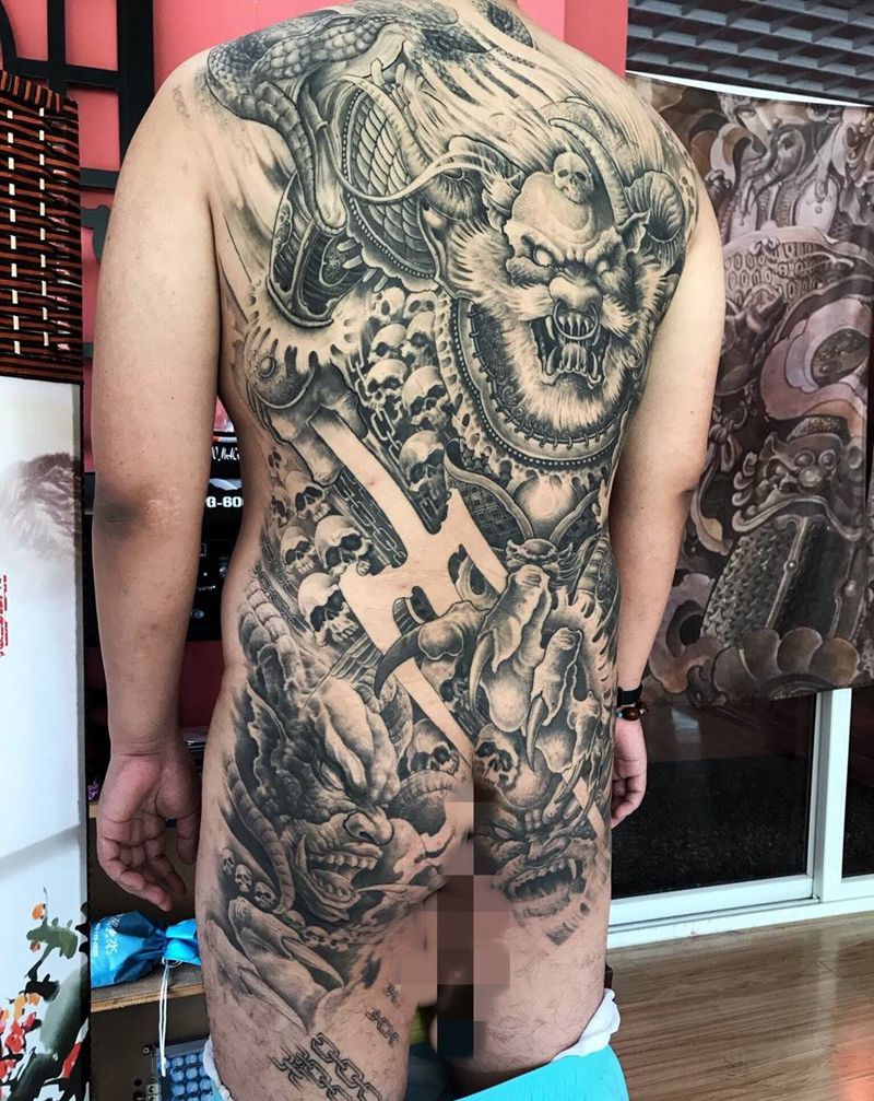 牛魔王纹身图片_成品背部传统人物纹身图案