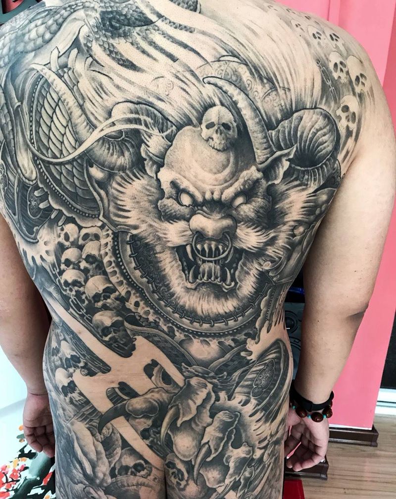 牛魔王纹身图片_成品背部传统人物纹身图案