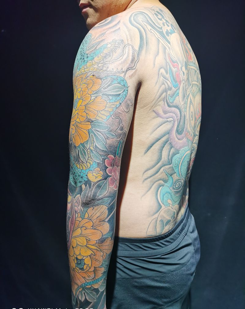 当前位置: 首页 >山东省烟台市纹身店-墨林沉彩画馆纹身图案>花臂纹身图片_手臂新传统纹身图案