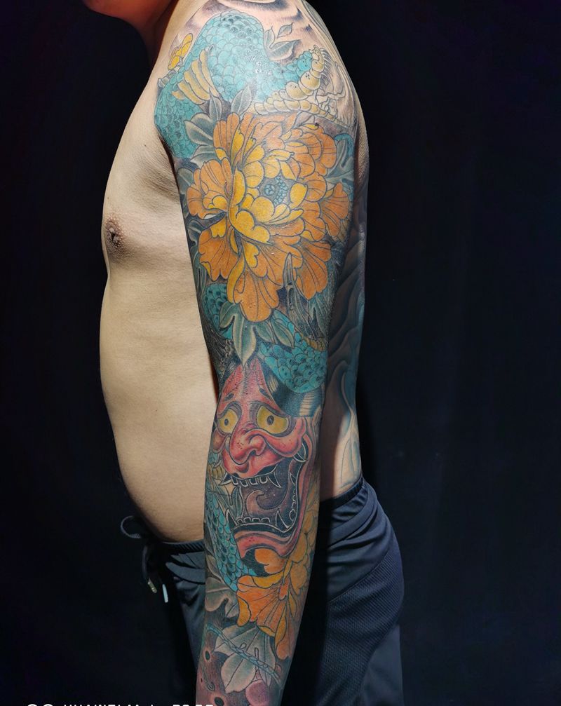 当前位置: 首页 >山东省烟台市纹身店-墨林沉彩画馆纹身图案>花臂纹身图片_手臂新传统纹身图案