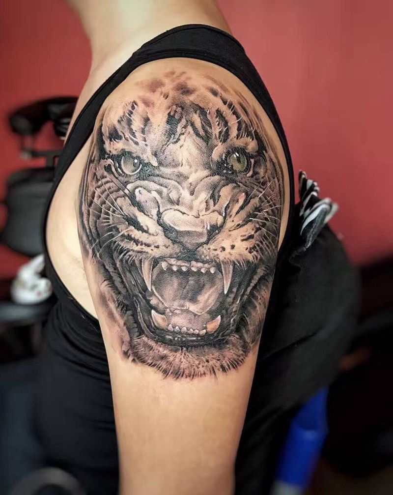 当前位置: 首页 >山东省烟台市纹身店-李俊 刺青纹身图案>虎头纹身图片
