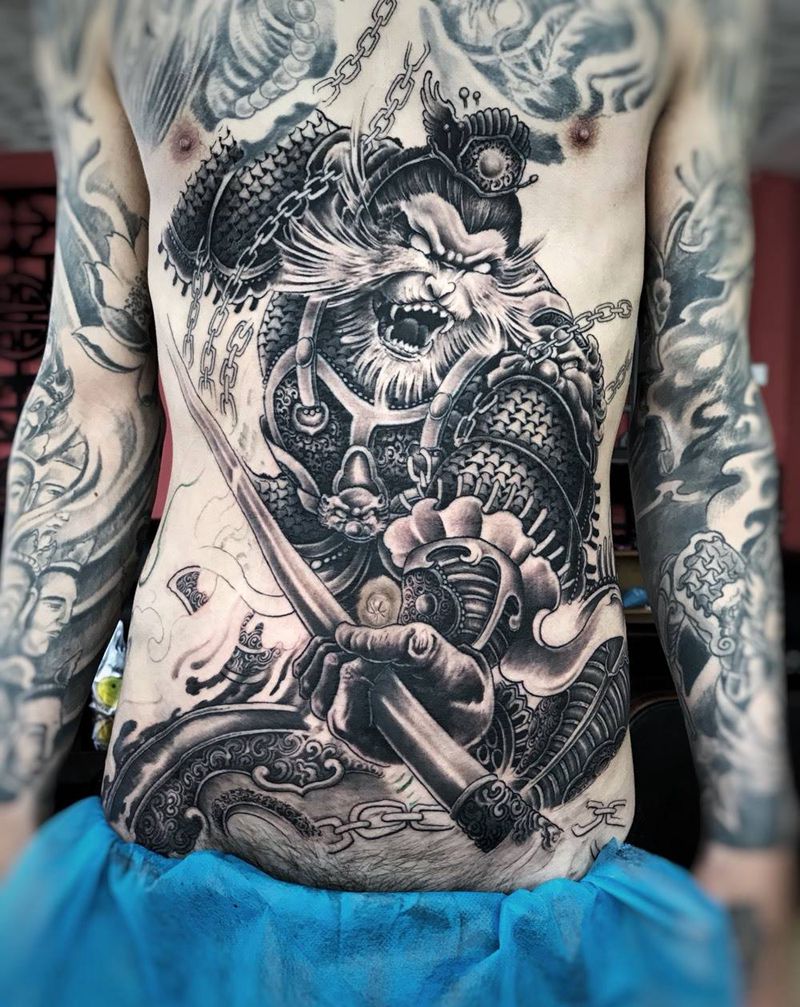当前位置: 首页 >山东省烟台市纹身店-李俊 刺青纹身图案>怒砸老君炉纹身图片_腹部传统人物纹身图案