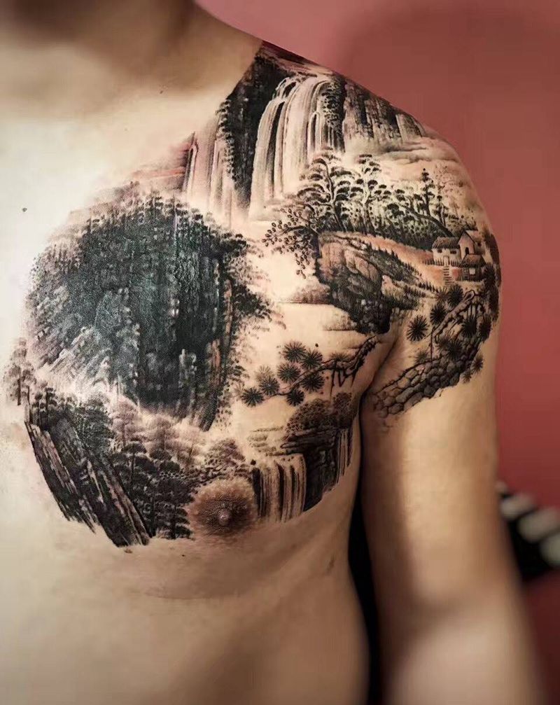 • 男性大花胸_42张优秀的男性大花胸纹身图案图片