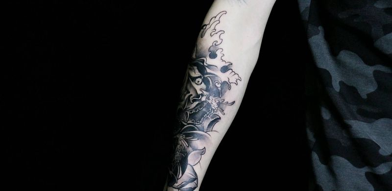 当前位置: 首页 >山东省潍坊市纹身店-青尘-TATTOO纹身图案>传统般若纹身图片_手臂新传统纹身图案
