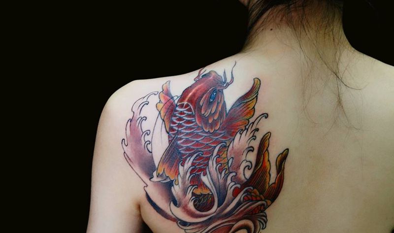 当前位置: 首页 >山东省潍坊市纹身店-青尘-TATTOO纹身图案>【红色锦鲤】纹身图片_背部新传统老传统纹身图案