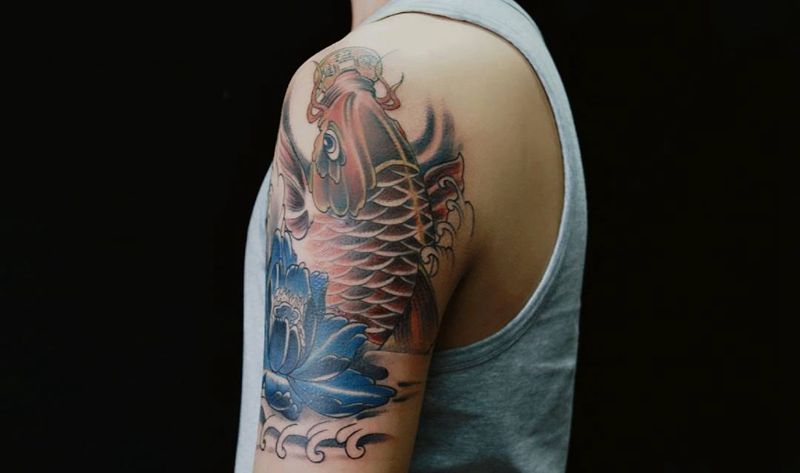 当前位置: 首页 >山东省潍坊市纹身店-青尘-TATTOO纹身图案>【鱼跃】纹身图片_新传统纹身图案