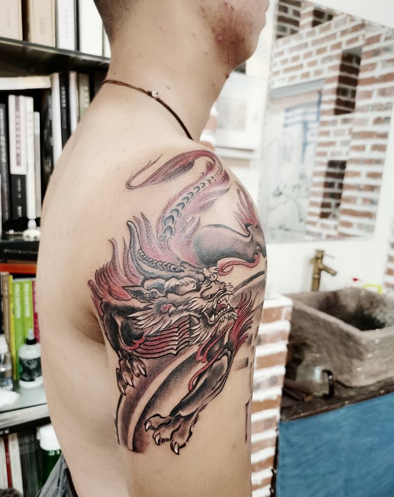 当前位置: 首页 >山东省潍坊市纹身店-青尘-TATTOO纹身图案>白泽纹身图片_手臂水墨新传统纹身图案