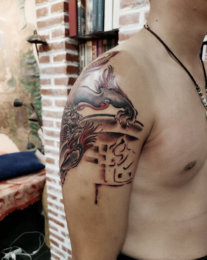 当前位置: 首页 >山东省潍坊市纹身店-青尘-TATTOO纹身图案>白泽纹身图片_手臂水墨新传统纹身图案