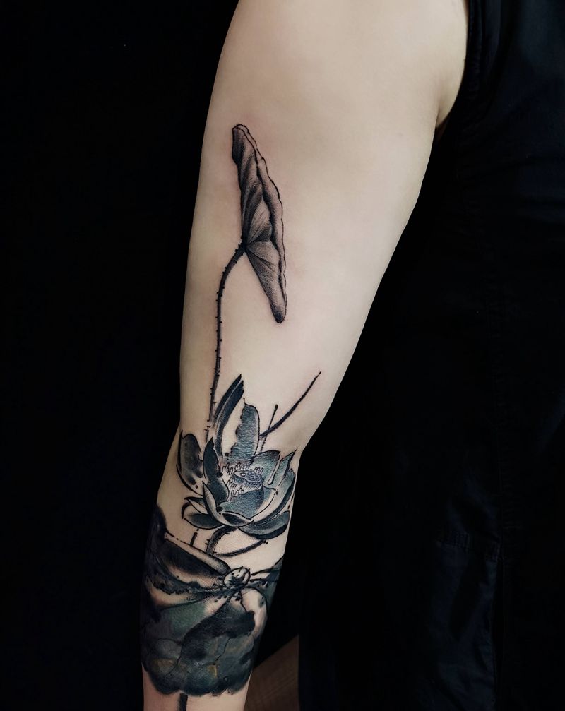 当前位置: 首页 >山东省潍坊市纹身店-青尘-TATTOO纹身图案>新荷纹身图片_手臂水墨纹身图案