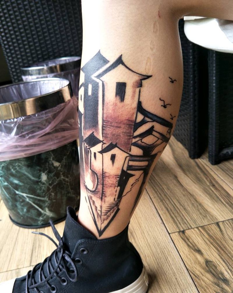 • T网红王老大花腿龙纹身图片_腿部新传统纹身图案
