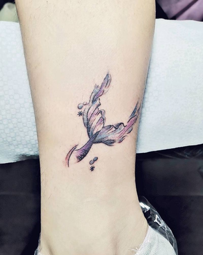 【人鱼尾】纹身图片_腿部水彩纹身图案