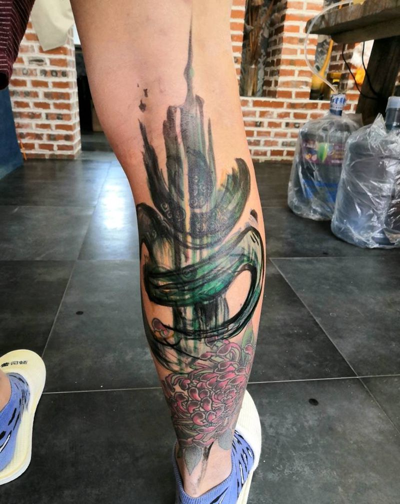 当前位置: 首页 >山东省潍坊市纹身店-青尘-TATTOO纹身图案>水墨书法遮盖纹身图片_腿部水墨纹身图案