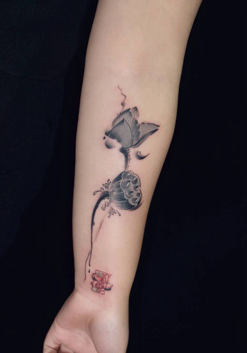 一组15张莲花纹身手
