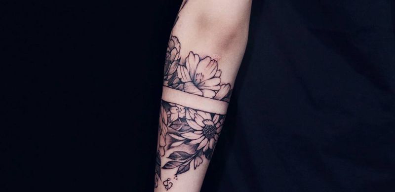 素花包小臂纹身图片_手臂水彩点刺纹身图案