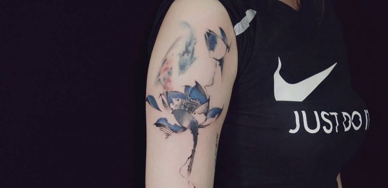 当前位置: 首页 >山东省潍坊市纹身店-青尘-TATTOO纹身图案>水墨荷花纹身图片_手臂水墨纹身图案