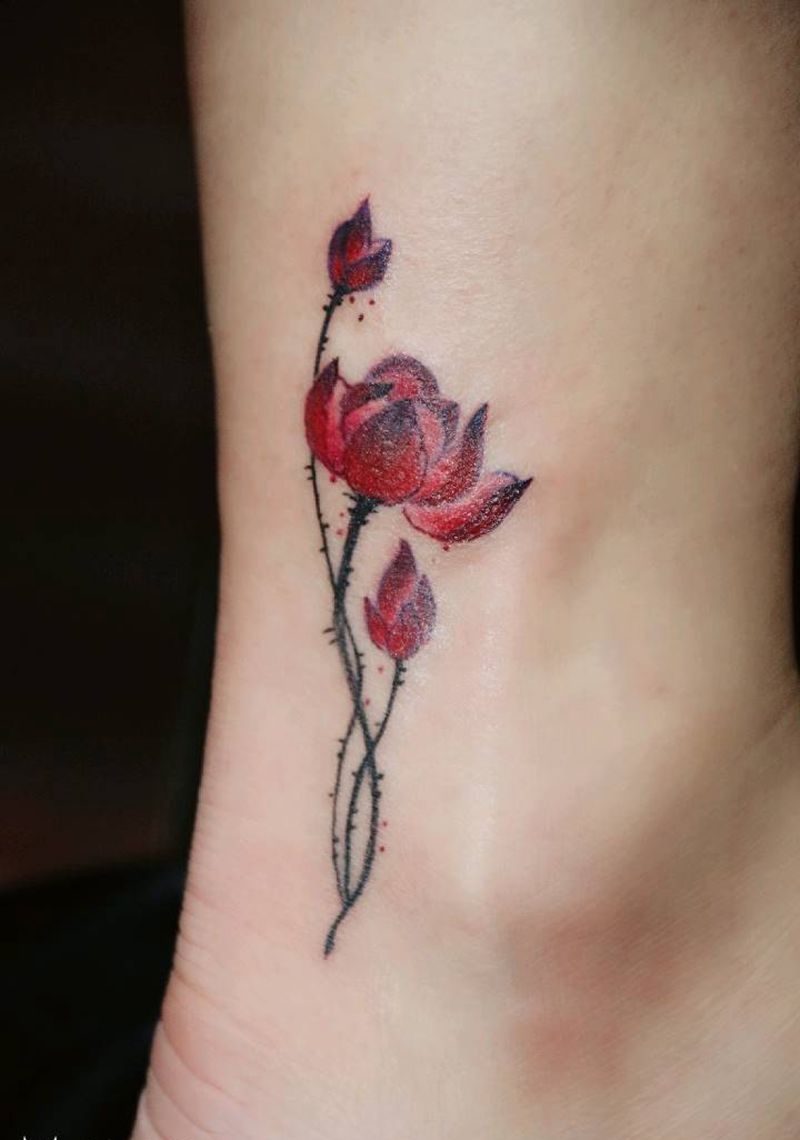 【步步生莲】纹身图片_脚部水墨水彩纹身图案