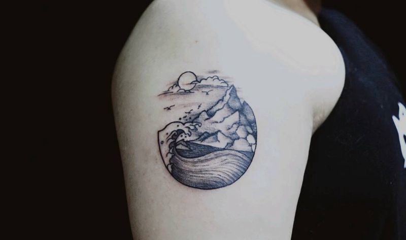 当前位置: 首页 >山东省潍坊市纹身店-青尘-TATTOO纹身图案>小山水纹身图片_手臂点刺几何纹身图案